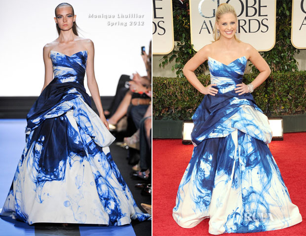 | سارا ميشيل غيلير ترتدي فستان من تصميم Monique Lhuillier |