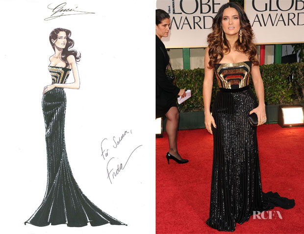 | سلمى حايك ترتدي فستان من تصميم Gucci |