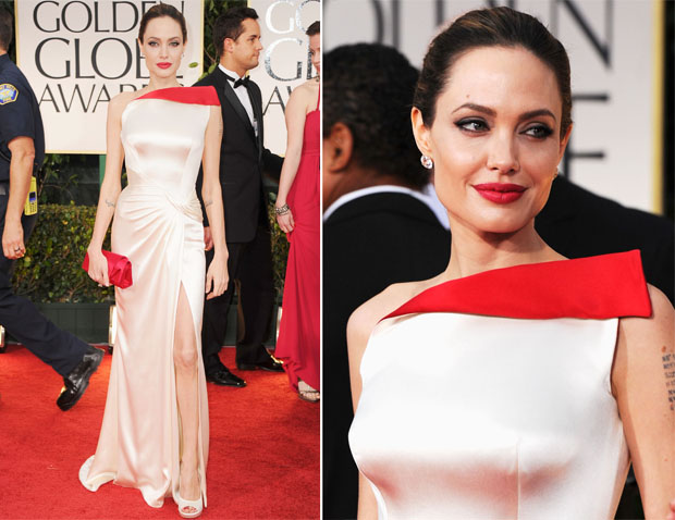| انجلينا جولي ترتدي فستان من تصميم Versace |