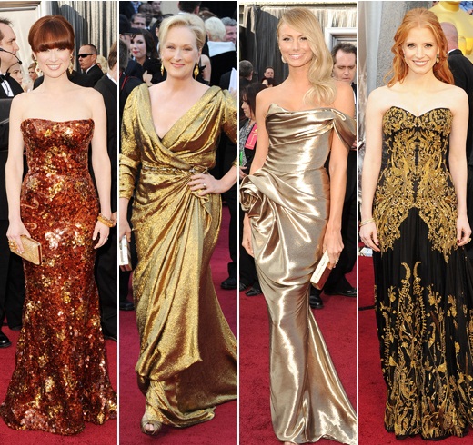 اللون الذهبي ظهر على العديد من النجمات مثل ستايسي كابلر وميريل ستريب وغيرهم
