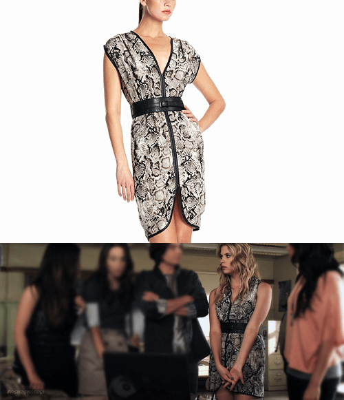 كارديغان أسود على فستان بنقشه بسيطه .. لاحظوا الحزام فوق الكارديغان عشان تحدد خصرها أكثر