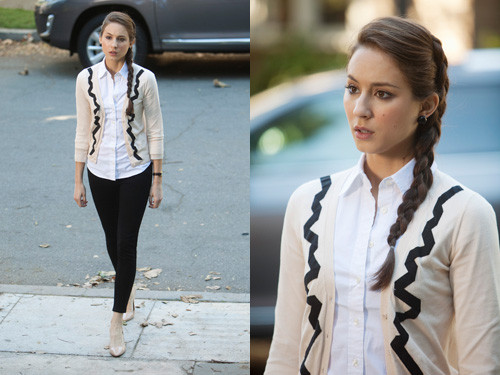 هنا اريا لبست بنطلون بطبعه ليبورد على رجل وحده .. مع حذاء بنفس لون الكارديغان.. الاكسسوار لبست عقد فينتاج مع حلقان صغيره