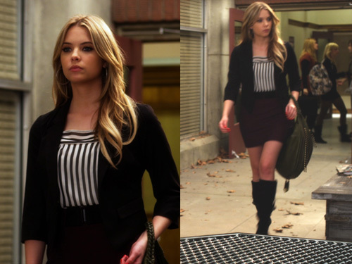 بلوزه منقطه باللونين الأبيض والأسود لبست تحتها بلوزه حمرا وخلت طرفها باين بس عشان تكسر روتين الأبيض والأسود