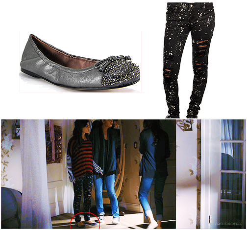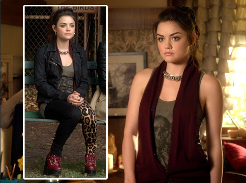 هنا اريا لبست بنطلون بطبعه ليبورد على رجل وحده .. مع حذاء بنفس لون الكارديغان.. الاكسسوار لبست عقد فينتاج مع حلقان صغيره