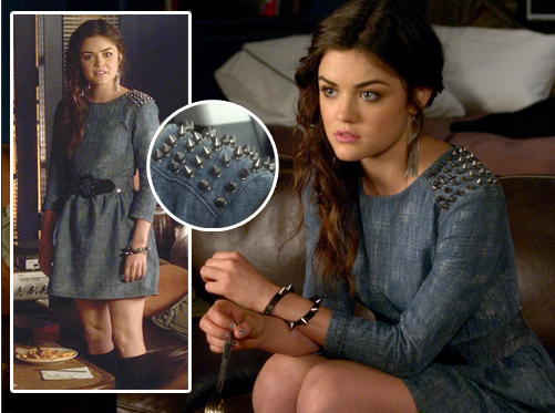 فستان جميل بستادز على الأكتاف والإكسسوارات اختارت حلقان بسلاسل واساور بستادز