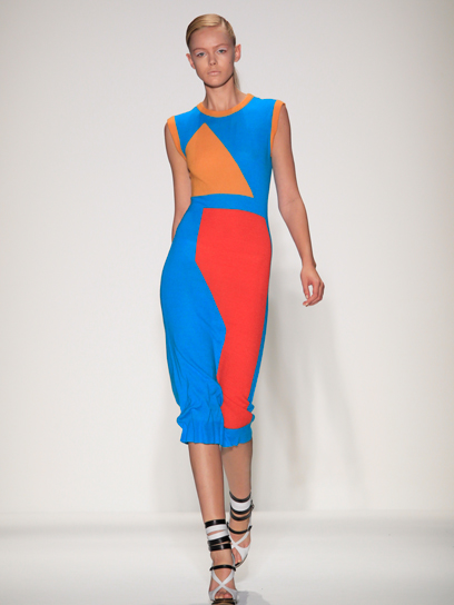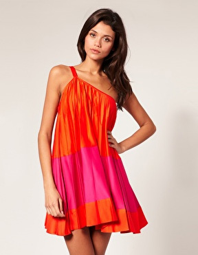 تريسا بالمر اظهرت جسمها الصبياني بطريقه انثويه ,, ببساطه دمجت لونين فاتحه (الفوشي والبرتقال)على منطقه الصدر
