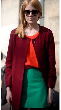 الألوان المواجهه لبعض مثل البرتقالي والأزرق تتطلب شجاعه لإرتدائها ولكنها تبدو رائعه معاً