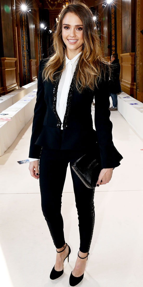 – نجمات كثير لبسو هذا اللوك على السجادة الحمرا يعني نقدر نقول انه ما عاد محصور على المكتب أو العمل شوفي الصور