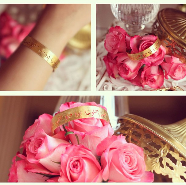 كمان عندها تصميم تقدرو تحفر الجملة اللي تبغونها على الإسوارة .. أختي تحب الشعر تجننت عليها