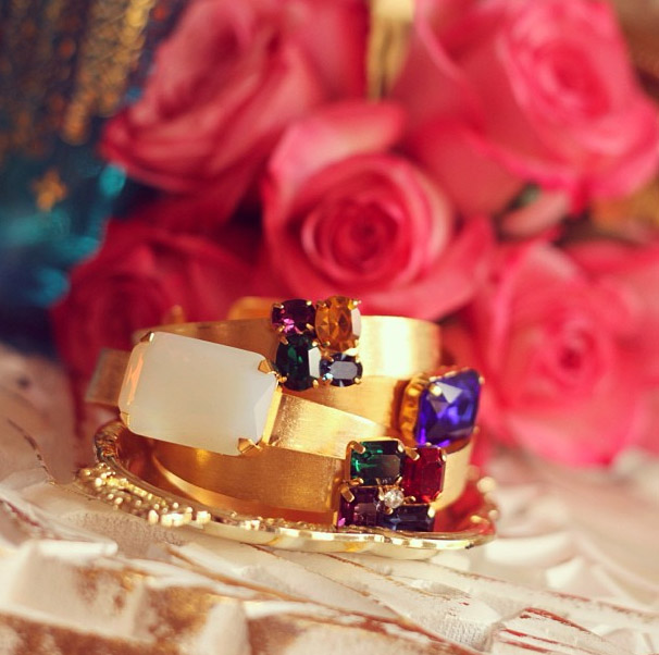 هي مجموعة أساور وخواتم مطليّة بالذهب مرررره ناعمة .. حبيت تصاميمها فوق ما تتصورون .. يمكن لأن أنا أحب الإكسسوارات اللي فيها أحجار ملونة بالذات ان ألوان الأحجار مختلفة