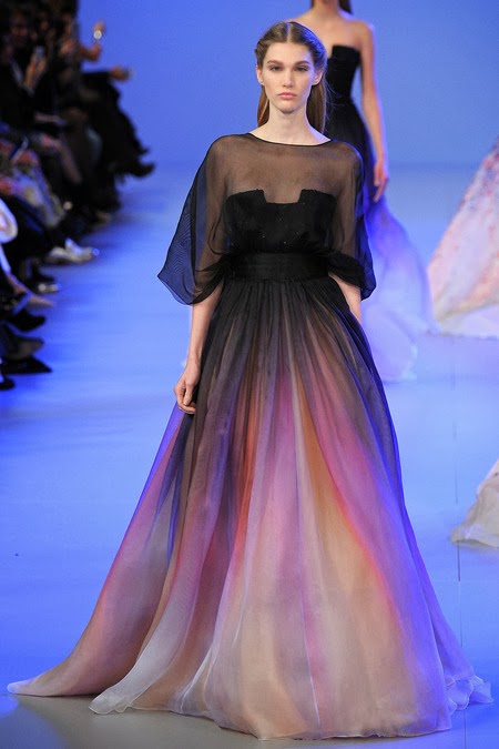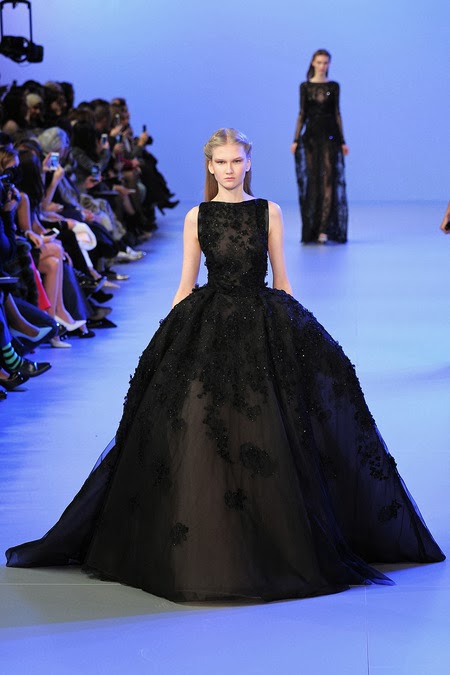 رأيي في تصاميم ايلي صعب غريب بصراحة ،، في الأيام العادية أقول عادية وتشبه بعض ومافيها شي مميز بس لما أشوف العروض وأشوفها على السجادة الحمراء أنسى كلامي الأول وأخق وتعجبني ،عرض هذا الموسم كان رائع كالعادة حبيت كل التصاميم المعروضة وحبيت إضافة الـ Ball Gown أو الفساتين المنفوشة لهذي المجموعة خلتها مميزة