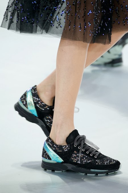 شانيل فاجأتنا بعرض هذا الموسم ،، العارضات كلهام كانو لابسين أحذية رياضية حتى العروس كانوخفيفين وهم يمشون على الرنواي مررا كأنهم يركضن ،، في نهاية العرض معظم البنات على تويتر ما عجبتهم هذي الفكرة “أحذية رياضية مع فساتين السهرة” بس بعض النظر عنها الأزياء كانت عادية ما فيها شي مختلف