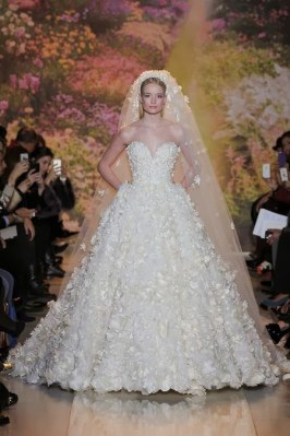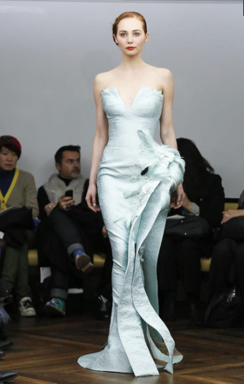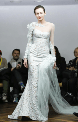 بالنسبة لفستان العروس ماكان مميز أبداً برأيي بالذات انه مشابه لتصاميم العروس اللي قدمها المصمم في المواسم السابقة .