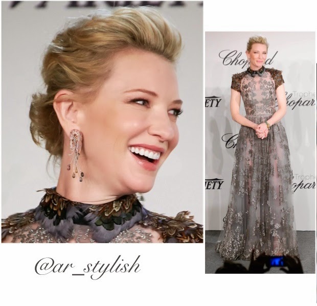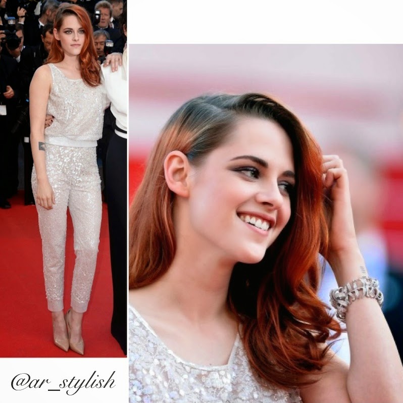 مع ان هذي الطلة كانت غير مناسبة للمهرجان أبداً لكنها عجبتني مرره ، حبيت شكل كريستين هنا ، وحبيت انها اكتفت بإسورة من شانيل مع بدلتها