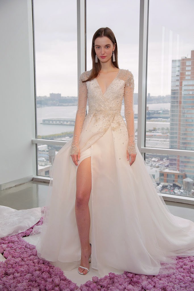 تكررت هذي الأكمام عند أكثر من مصمم وبالذات ريم عكرا ،، حبيتها لأنها شي مختللف تقريباً عن الأكمان الدانتيل أو الشيفون اللي دايماً نشوفها في فساتين العرايس