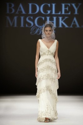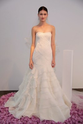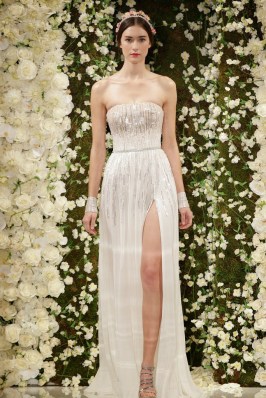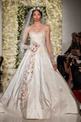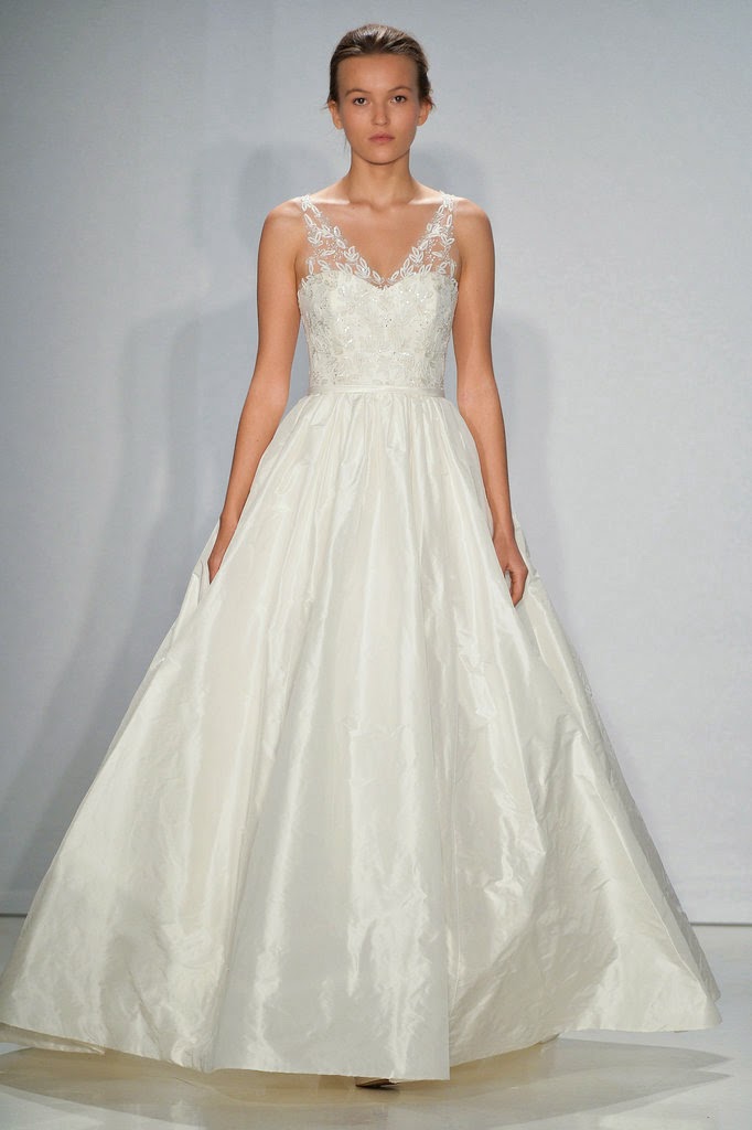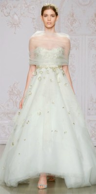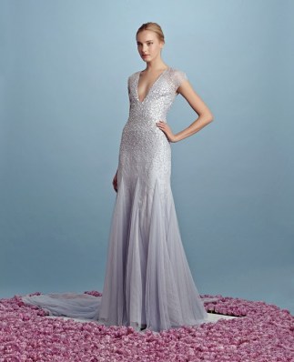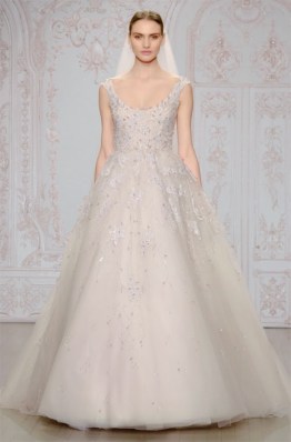 في هذا الموسم ظهرت الألوان الناعمة والفاتحة جداً ، يعني يا دوب لمحة من اللون ،، عجبتني هذي الطريقة في تلوين فساتين الزفاف أحسها أكثر طريقة معقولة للعروس ، ظهرت الألوان أكثر شي في مجموعة مونيك لولييه Monique Lhuillier