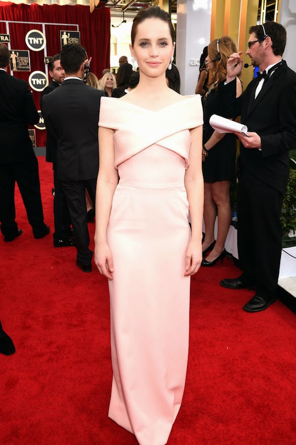 أكيد لاحظتو الشبه الكبير بين فستانها وفستان فيليستي جونز في الصورة اللي فوق بس المصمين كانو مختلفين 😐