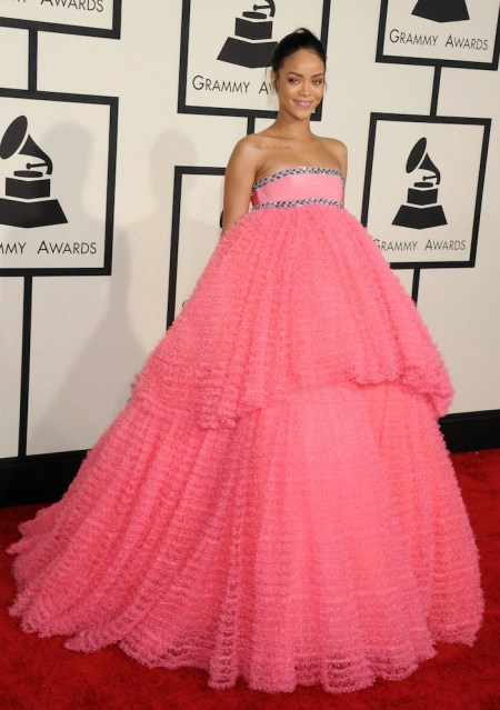 حفل الغراميز بالذات دايماً تفوز فيه اللي تجي بلوك يخلينا نتكلم عنها لسنين قدام و ريانا برأيي نجحت بهذا الشي ،، صحيح شكلها زي كيكة العروسة أو حلاوا غزل البنات او المارشميلو أو اللي تبغونه D=