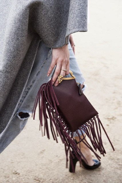 أوليفيا باليرمو في الصورة اللي تحت لبست شنطة وتنورة فرينج مع بعض وطلع شكلهم حلو .