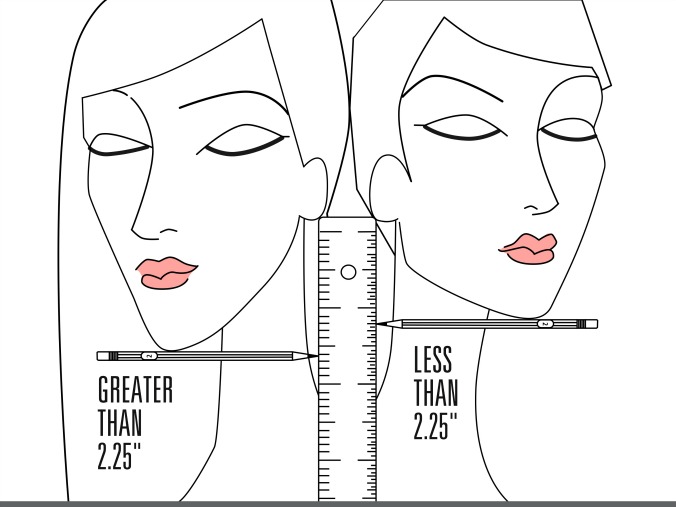 نشر موقع مجلة Instyle هذا الاختبار اللي ابتكره خبير الشعر Giles Robinson . وهو ببساطة انك تجيبين مسطرة وتقيسين من تحت الأذن إلى الدقن ،، وعشان يطلع القياس دقيق هاتي قلم ووقفيه تحت دقنك بالعرض ، اذا طلع القياس اقل من 2.25 انش (يعني 5.7 سم) رح تناسبك القصة بس اذا طلع أكثر هذا الرقم فالشعر الطويل رح يكون أجمل عليك .
