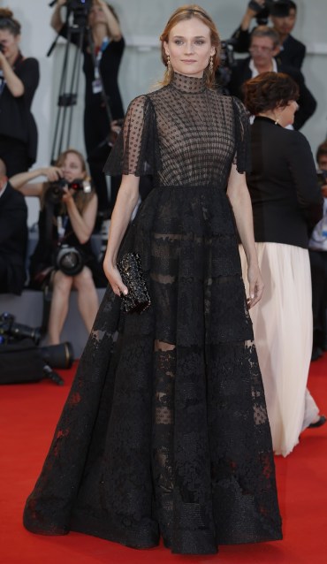 طلات دايان كروغر دائماً مميزة ، إختياراتها ملفته و تنسيقاتها جميلة وذكية ، في الصورة الأولى لابسة فستان من Boss حبيت لونه و والمخمل زاده فخامة ، وفي الصورة الثانية لابسة فستان من Prada ، اللوك كان جميل و متناسق الكيب اللي ورا الفستان أحس حيكون أجمل لو تركب عالخصر مو عالظهر من فوق بس برضو اللوك الفستان جميل . أما الصورة الثالثة فإختارت فستان من Valentino من آخر عروض الكوتور لخريف وشتاء 2015 حسيت يصلح تطلع في الفرض كموديل بهذا اللوك الجميل .