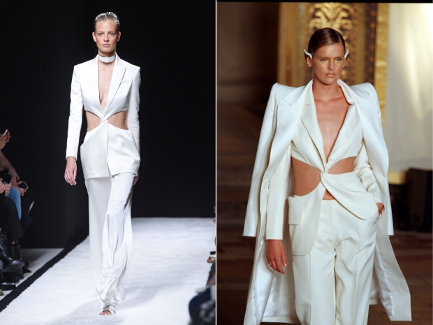 عاليسار تصميم من مجموعة Balmain SS15 وعاليمين التصميم الأصلي من مجموعة Givenchy SS97 .