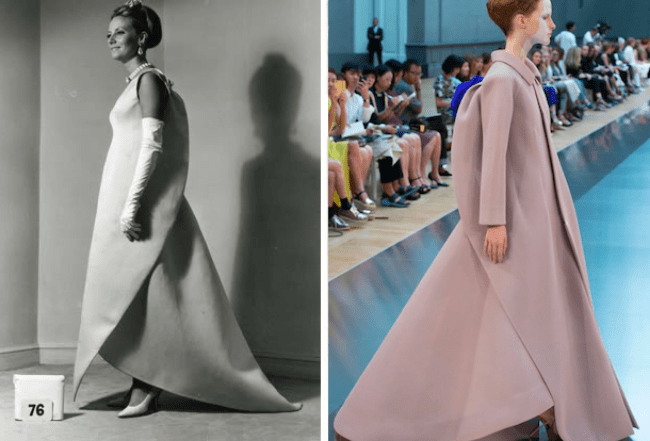 عاليمين تصميم غاليانو لـ Maison Margiela Couture FW2015 وعاليسار تصميم Balenciaga FW1965